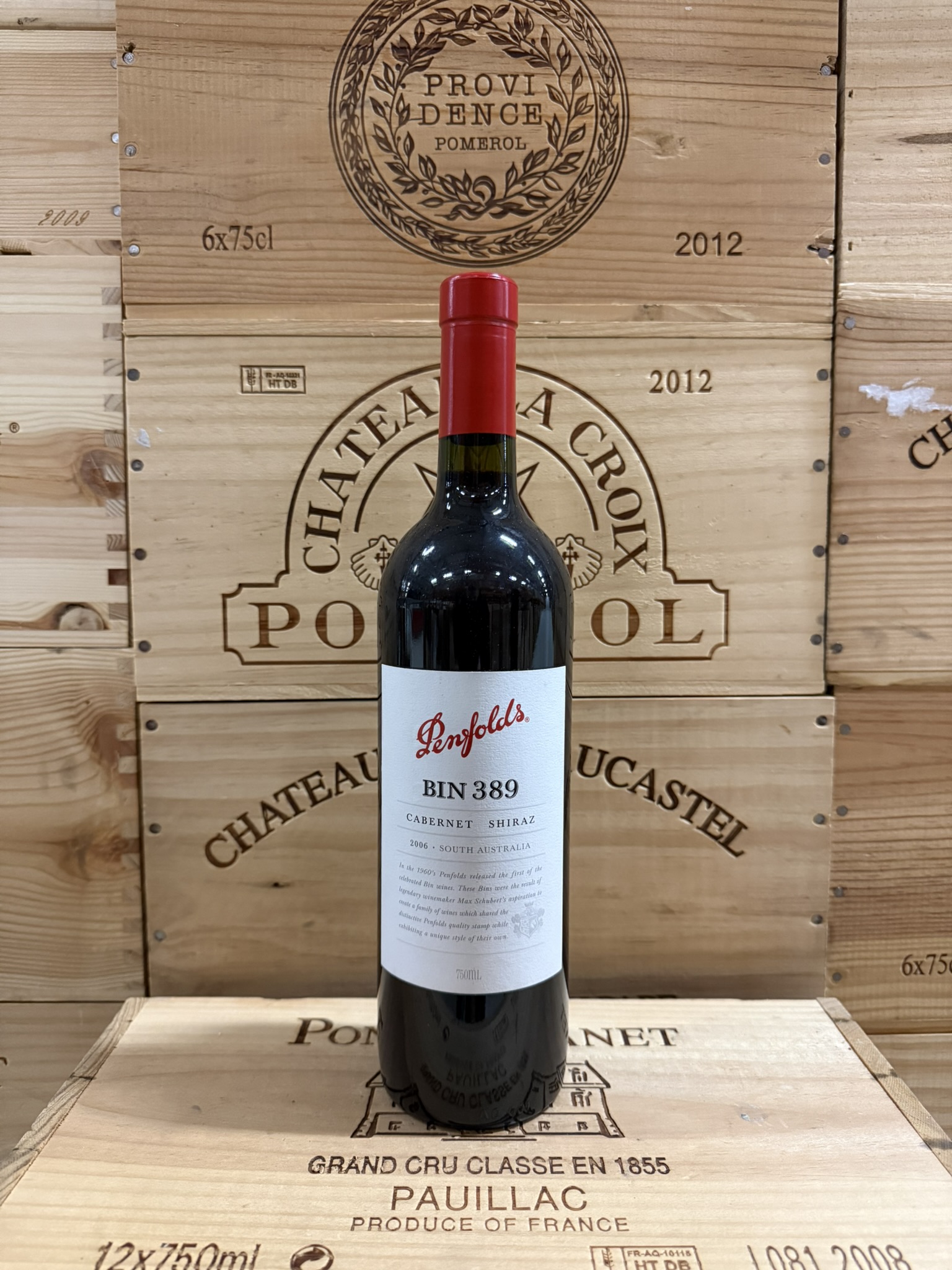 The 2005 Bin 389 Cabernet Sauvignon (52%)-Shiraz (48%) is crimson-colored with aromas of smoke, tobacco, mineral, black currant, and blackberry. Elegantly styled, it offers racy black fruit flavors, hints of licorice and chocolate, and a lengthy, pure finish.